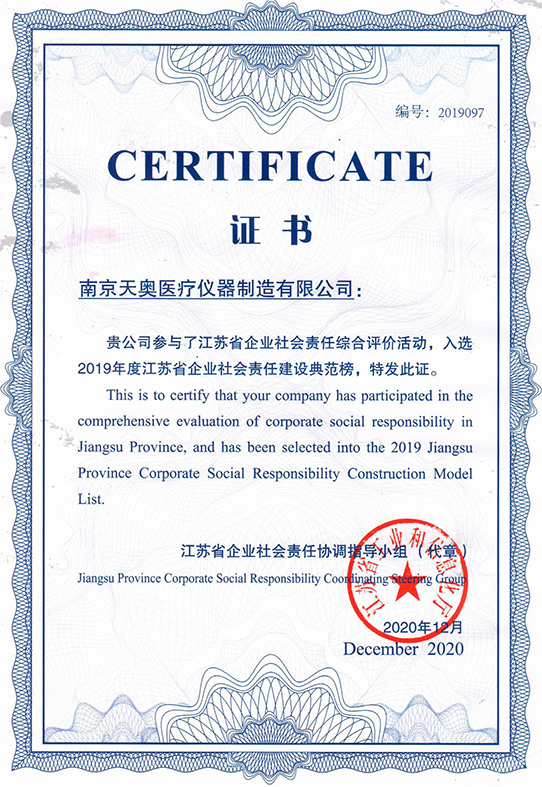在2020年武汉新冠疫情期间,天奥紧急加班生产,为武汉火神山、雷神山医院累计交付了3491件医用护理及宝威(中国)一站式服务官网设备,为战胜疫情贡献了天奥力量。3月底天奥名列省级新冠肺炎疫情重点保障企业名单,同时获得了2020年度南京市新冠肺炎疫情防控专利实施计划项目补助。